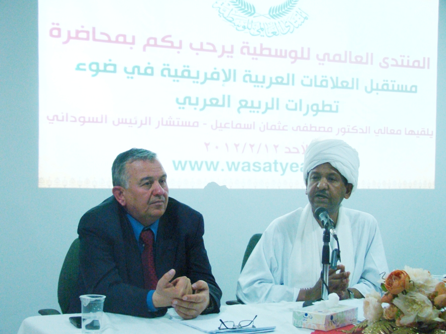 مستشار الرئيس السوداني يحاضر حول مستقبل العلاقات العربية الإفريقية وتطورات الربيع العربي في منتدى الوسطية