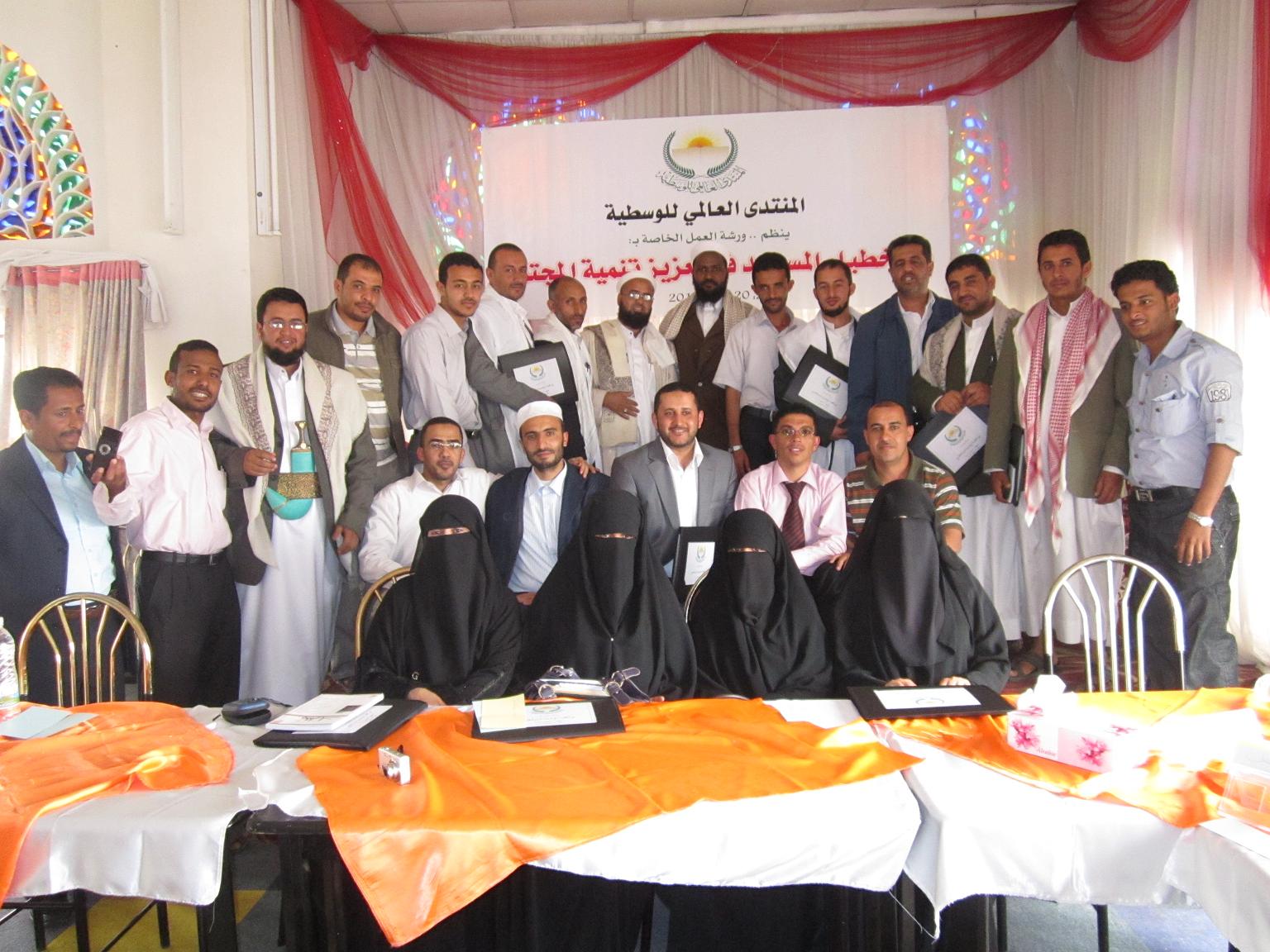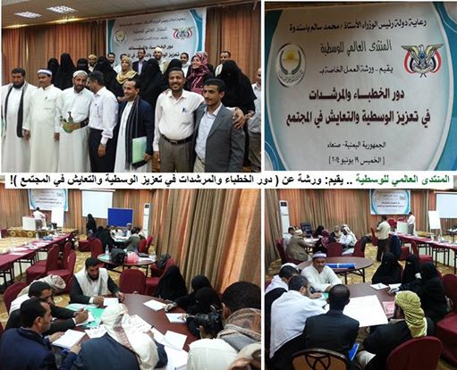 برعاية من دولة / رئيس الوزراء أ. محمد سالم باسندوة أقام المنتدى العالمي للوسطية / اليمن ورشة عمل حول: "دور الخطباء والمرشدات في تعزيز الوسطية والتعايش في المجتمع"