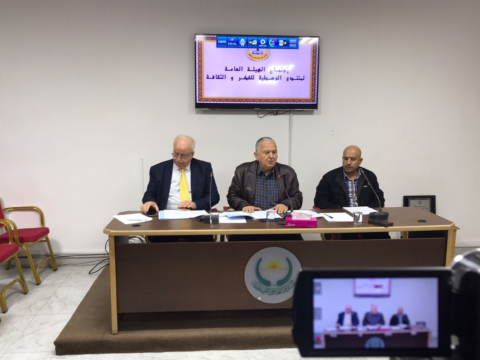 عقدت الهيئة الإدارية العامة في منتدى الوسطية للفكر والثقافة اليوم الإثنين 28/3/2022 اجتماعها السنوي وبحضور مندوب وزارة الثقافة السيد محمود الإبراهيم، وجرى خلال الاجتماع تلاوة التقرير الإداري والتقرير المالي والمصادقة عليهما وتم انتخاب هيئة إدارية جديدة للمنتدى مكونة من الذوات: