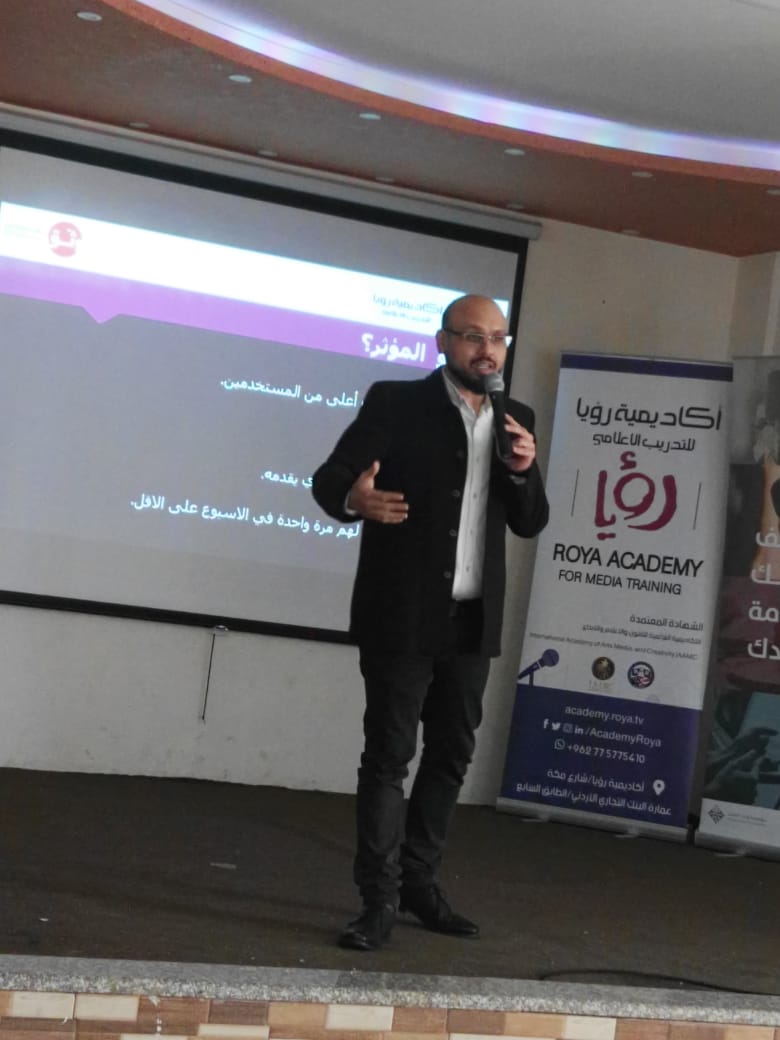 وتحدث مدير أكاديمية رؤية للتدريب الاعلامي رمزي الكرمي عن اهداف مهارات الإعلام وكيف يمكن لأي مهتم ان يطور تلك المهارات، واكد على كيفية صياغة الخبر الصحفي وانتقاء الكلمات والعبارات المؤثرة حتى تكون جاذبة ضمن حدود اخلاقيات العمل الصحفي والابتعاد عن الظلم والوقوع بالخطاء والذي يؤدي الى عدم وجود العدل وتحقيق اهداف الدين الاسلامي الذي يدعو للوسطية والاعتدال والابتعاد عن طرح مواضيع كاذبه هدفها الفتنه والانحراف عن المسار الصحيح وجعل اهدافنا تحقيق الوحده الوطنيه ونشر العدل والمحبه بين ابناء المجتمع وتطبيق رؤية جلالة الملك المعظم... قال تعالى( يَا أَيُّهَا الَّذِينَ آمَنُوا إِن جَاءَكُمْ فَاسِقٌ بِنَبَإٍ فَتَبَيَّنُوا أَن تُصِيبُوا قَوْمًا بِجَهَالَةٍ فَتُصْبِحُوا عَلَىٰ مَا فَعَلْتُمْ نَادِمِينَ)صدق الله العظيم.